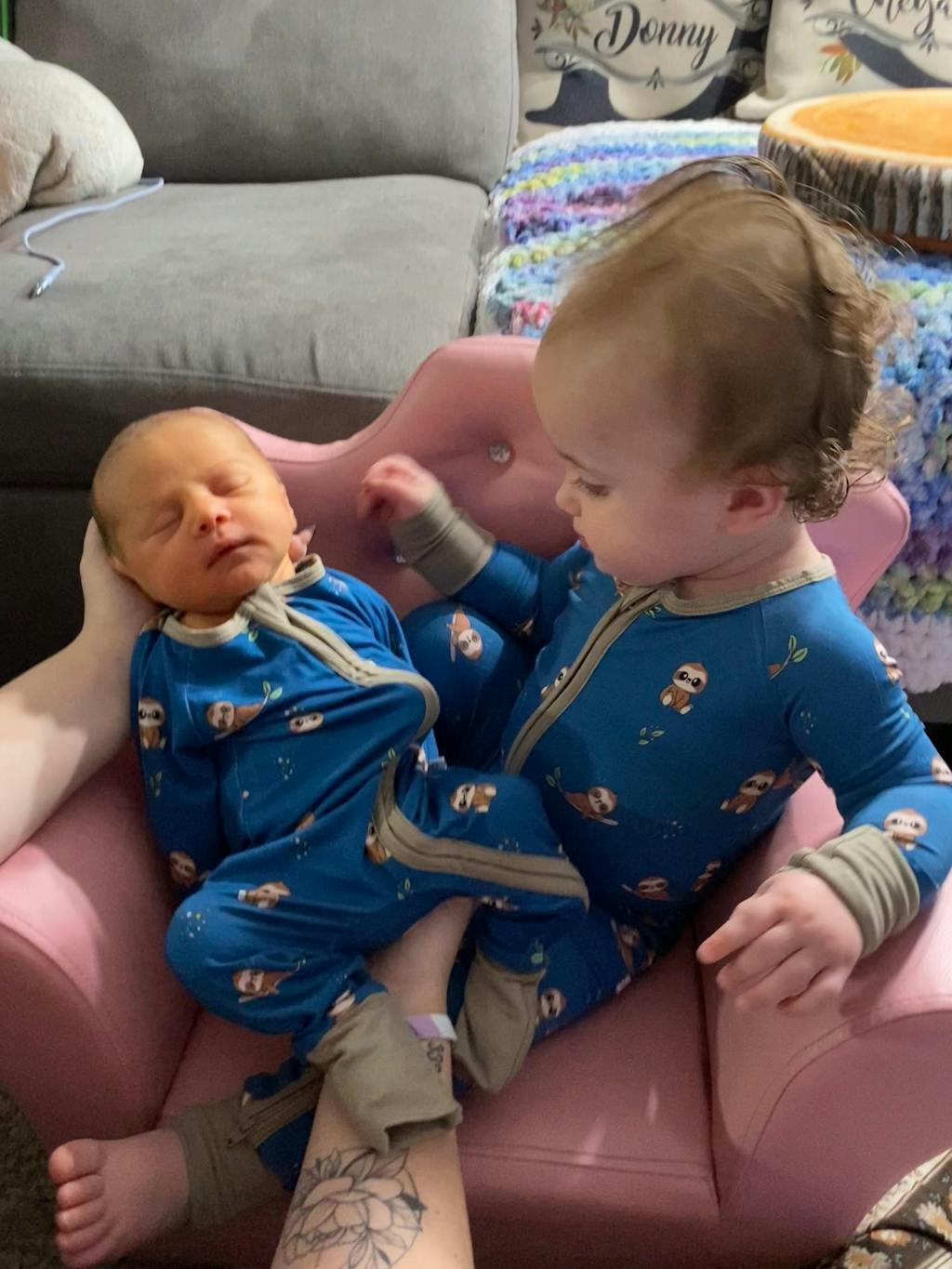 Complete the look with our Sleepy Sloth baby bow and one of our stretchy swaddle blankets - the full set makes a beautiful gift or keepsake.